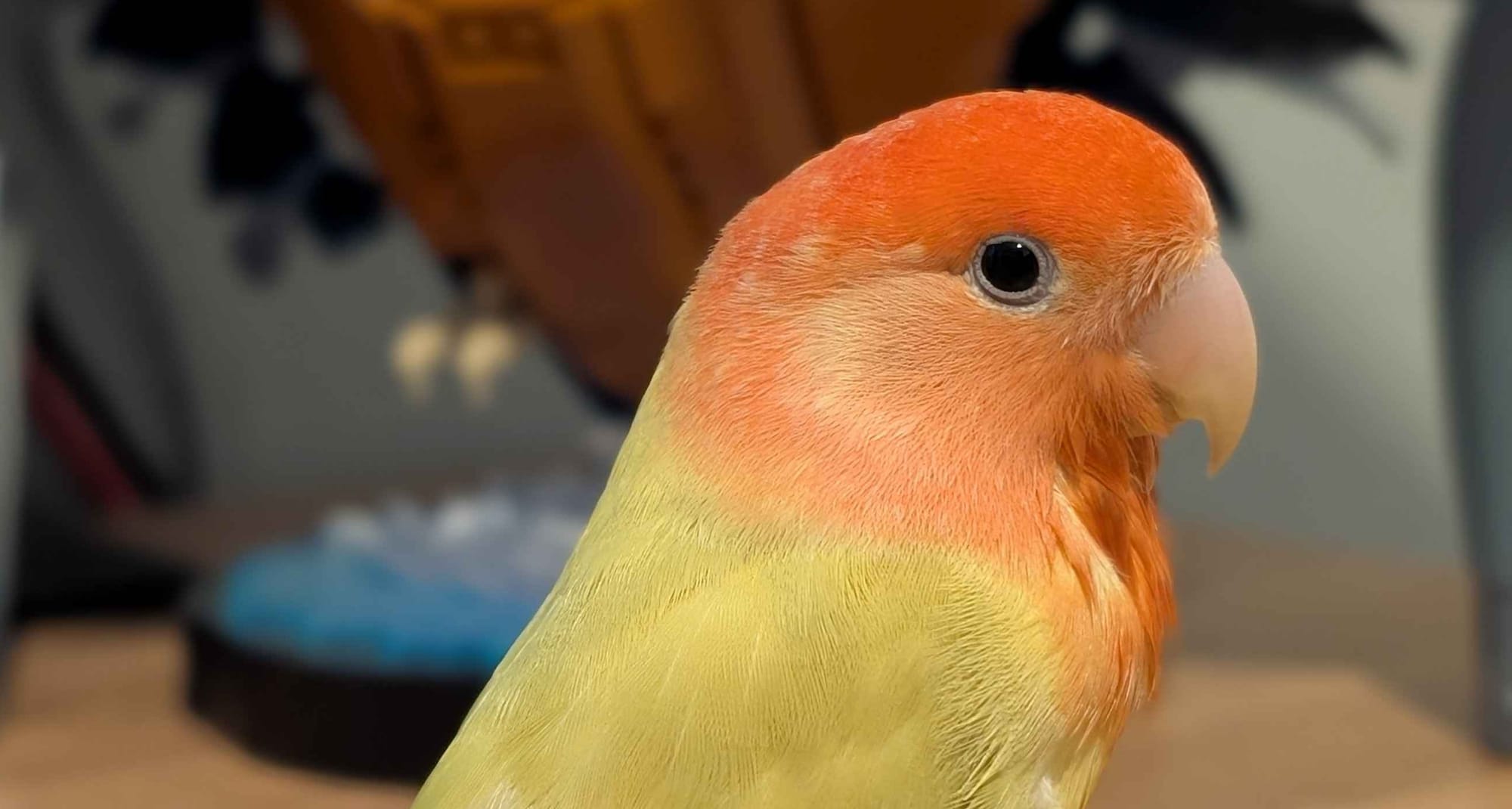 When talking about The Perch, we can't not start with our Mascot! The entire server is themed after the Founder's lovebird, Mac! She's a peach-faced lovebird, and you'll see her colours and influence all throughout the server. Below is a picture of her.